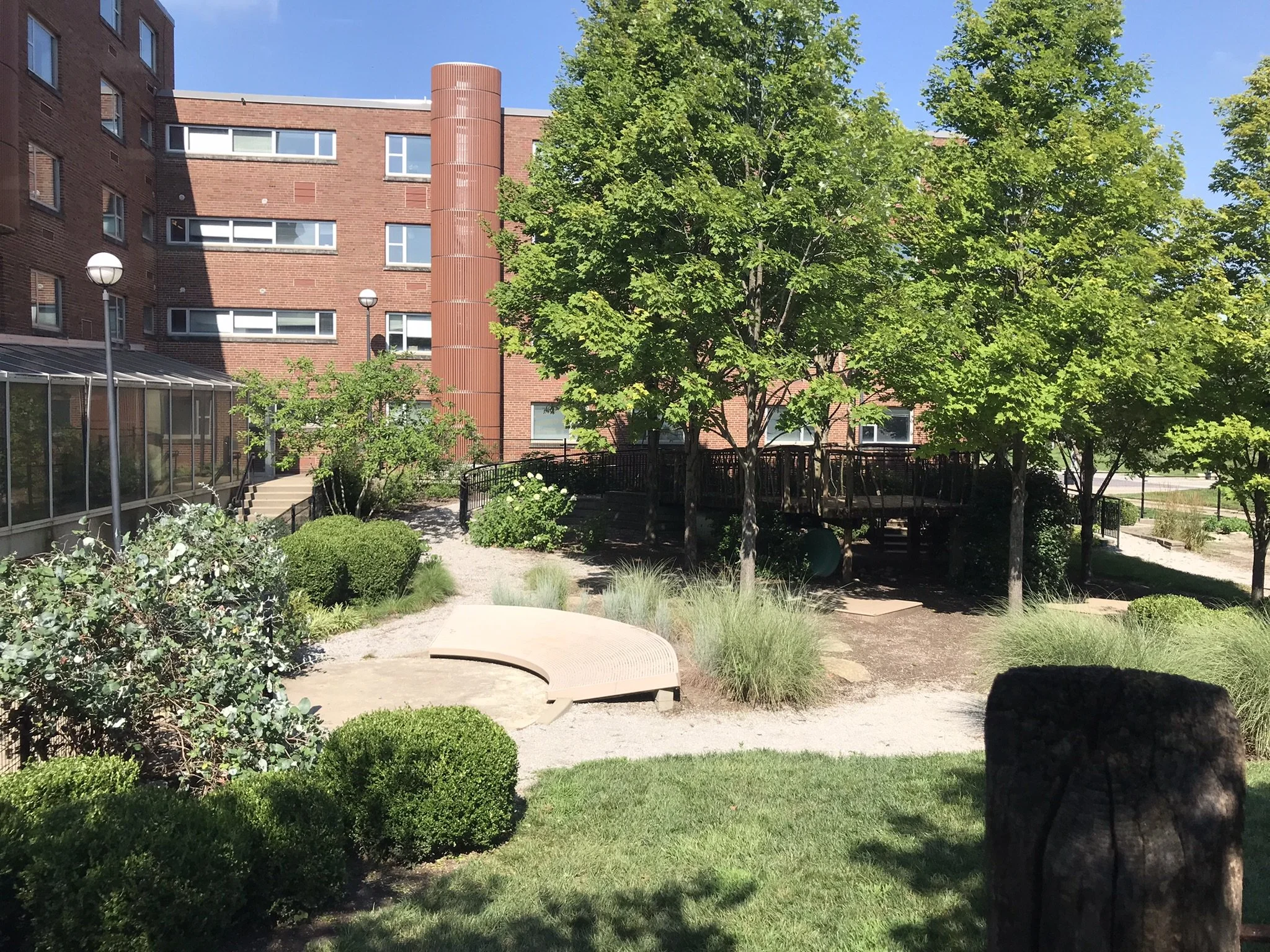 The design process required meeting both the high design standards of the University and the goals and objectives of Arlitt’s staff and administration. The design process, a collaborative one, also included the expertise of Architect Robin Moore of NLI and the University’s Architect and Landscape Architect. The University Graphic department created the illustrative drawing used for presentation and signage in the landscape. Architectural features were designed by Luke Robinson of LGR Architecture. The University, was committed and involved in the process of implementation working with the design team to verify that all drawings were implemented with their intent.